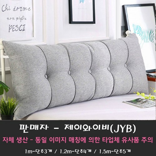 JYB 침대 헤드쿠션 대형 등받이 롱 솜 포함 (마혼방 피치 2종 원단), 일자헤드쿠션 마혼방-연그레이