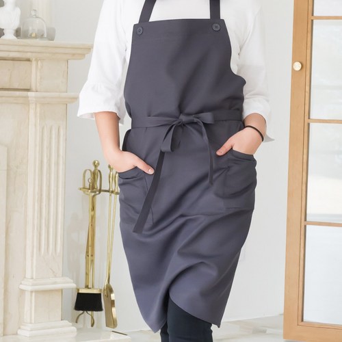 디지지 예쁜 방수 바리스타 카페 주방 공방 롱 식당 플로리스트 유치원 어린이집 작업용 애견미용 미용사 네일 목공 꽃집 커플 신혼 요리 교사 서빙 커피 무지 단체 선생님 공예 앞치마, 그레이