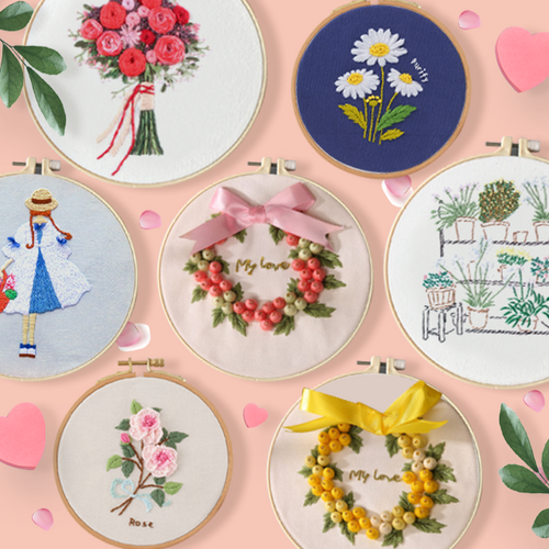 자수의 온도 프랑스자수 후프액자 플라워 패키지 6style, 해바라기