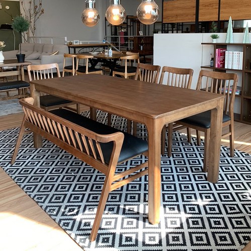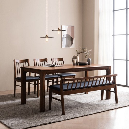 라로퍼니처 루아 원목 6인용 벤치형B 식탁 세트(식탁+의자3+방석벤치1) 식탁세트, 단품