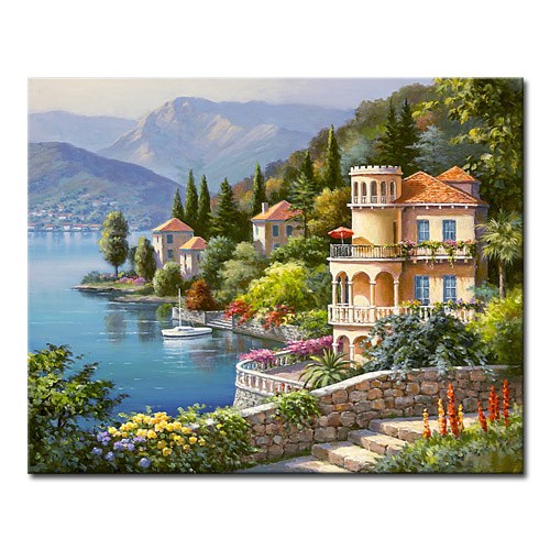 DIY캔버스페인팅 명화그리기, L14_호숫가의 별장