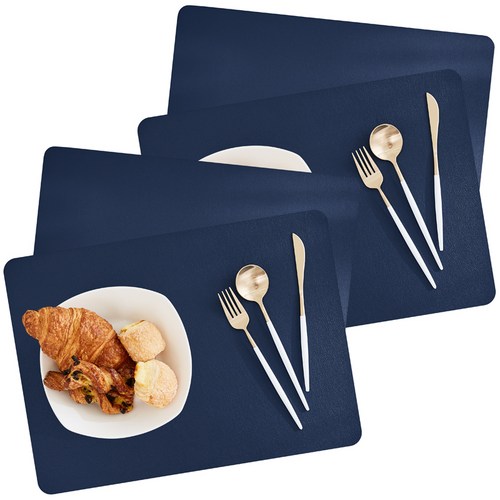 모던감 방수 가죽질감 식탁매트 4p, 네이비, 45 x 33 cm