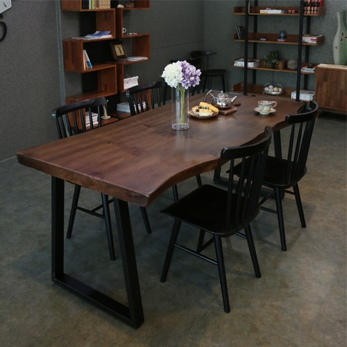 참갤러리 뉴송 우드슬랩 월넛 식탁 세트 (빗살원목의자 SET), 1400X700 SET (의자 4개)