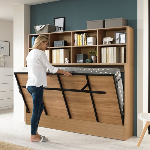 YK스토리 스마트 폴딩베드(월베드) 슈퍼싱글침대 책장형_본넬매트리스 포함, 아카시아&블랙