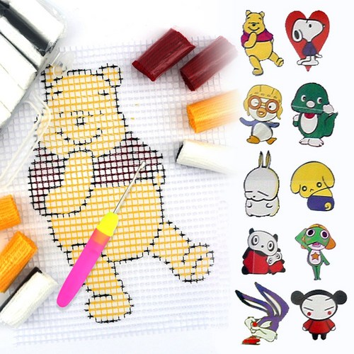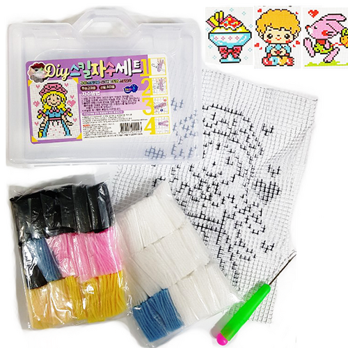 DIY 스킬자수 세트 12종 펀칭자수 래치훅 키트 취미 집콕 도안 포함 초보 어린이 스킬 십자수