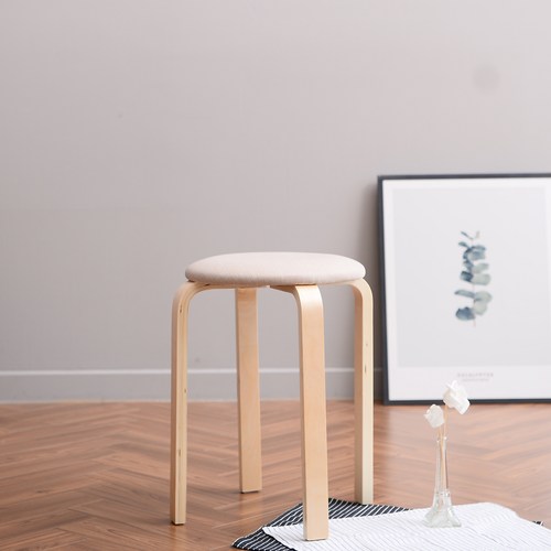 아이코닉하우스 플레인 원목 패브릭 스툴, 베이지