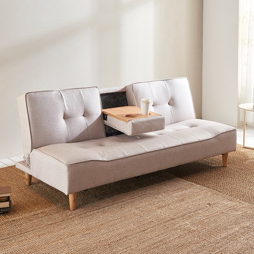 [삼익가구]베르아 3인용 컵홀더 접이식 소파베드, 오트밀