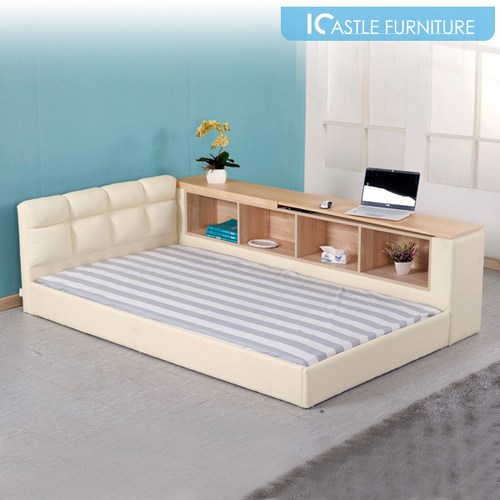 아이캐슬 칼리 특허 수납테이블 저상형 슈퍼싱글 침대, 아이보리(누웠을때 수납테이블좌측)