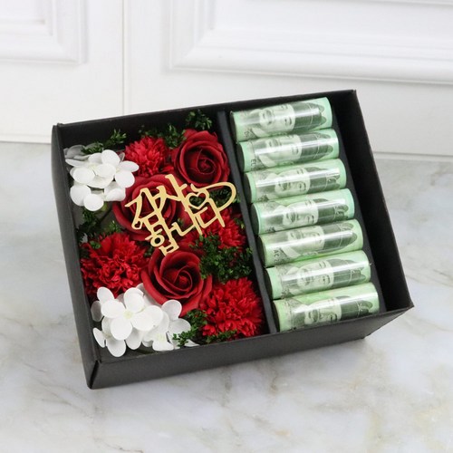 블뤼엔 조화 존경하는 마음 용돈박스n + 감사합니다 토퍼 + 카드, 레드