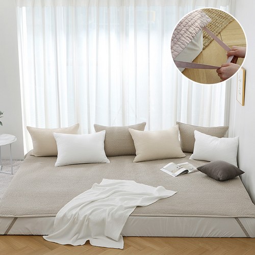 에코데코 로디나 순면 60수 워싱 피그먼트 패밀리 침대패드, 크림아이보리