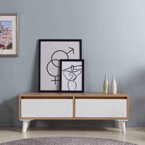 소프시스 TV테이블 1240, 티크판넬 + 화이트프레임