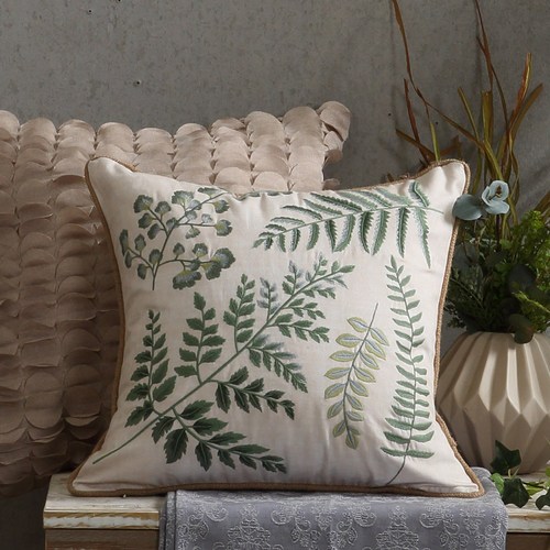 마르셀린 리프 자수 쿠션커버 + 쿠션솜 세트, 그린