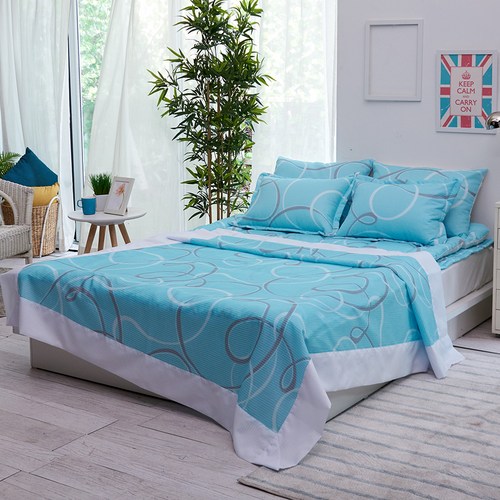 밀크디자인 시원한 인견 홑이불 + 패드 + 베개커버 세트, 블루