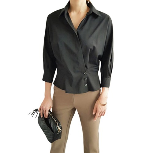 [제로의옷장]허리 핀턱 버튼랩 블라우스 BL0213R06