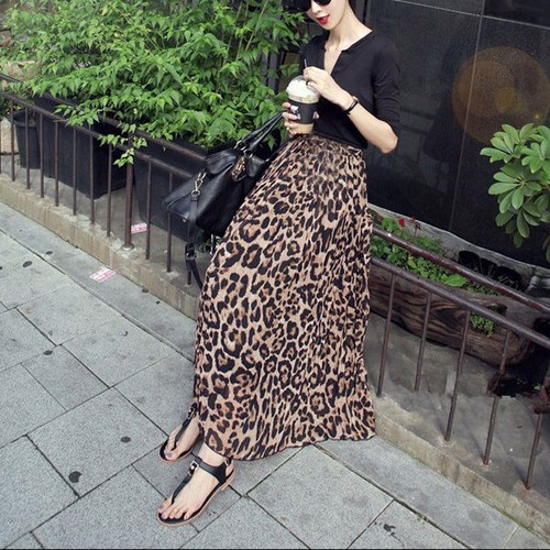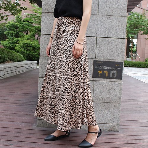 소문난여자옷 허리밴딩 쉬폰 호피 레오파트 주름 롱치마