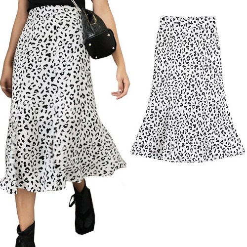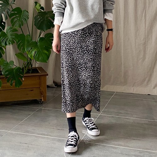 아모르데이 레오파드 H라인 뒷트임 스판 밴딩 스커트