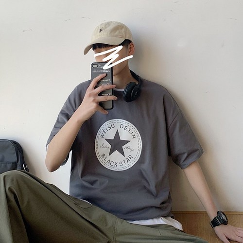 하라쥬쿠 반팔 티 여름 인스 트렌드 남 스타일리쉬