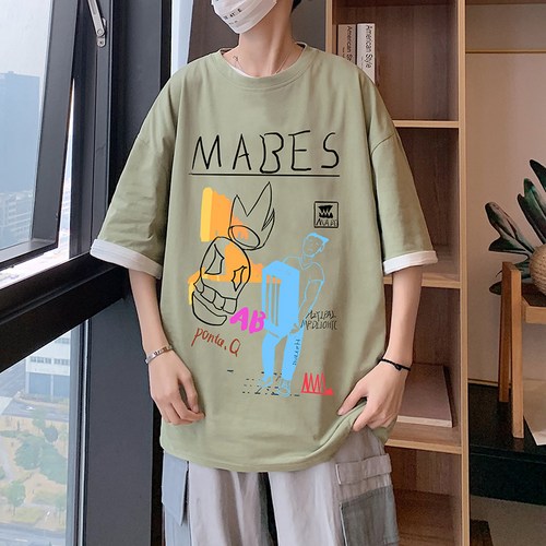 여름 반팔 티 남 루즈 핏 개성 반 소매 티셔츠 상의