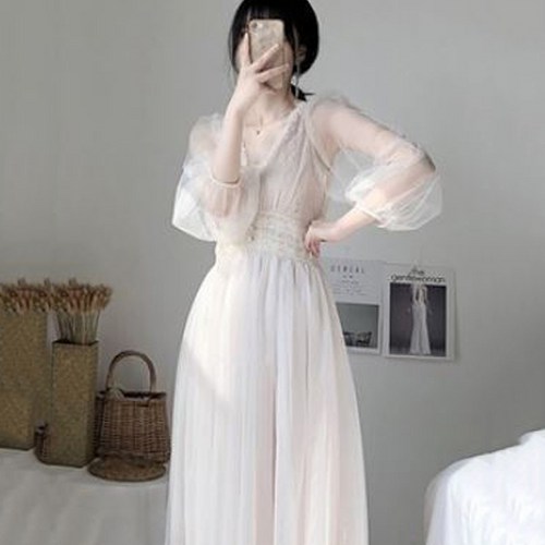 어썸투데이 셀프웨딩 드레스 브라이덜 샤워 쉬폰 시스루 여신 청순 원피스