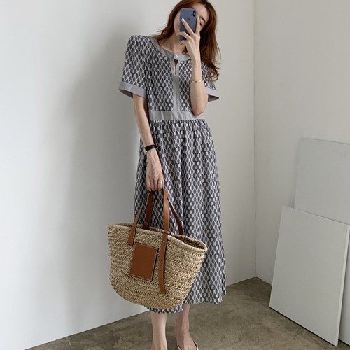 헤링본 롱 원피스 에스닉 보헤미안 반팔 비치웨어 휴양지 데일리 바캉스룩 H382