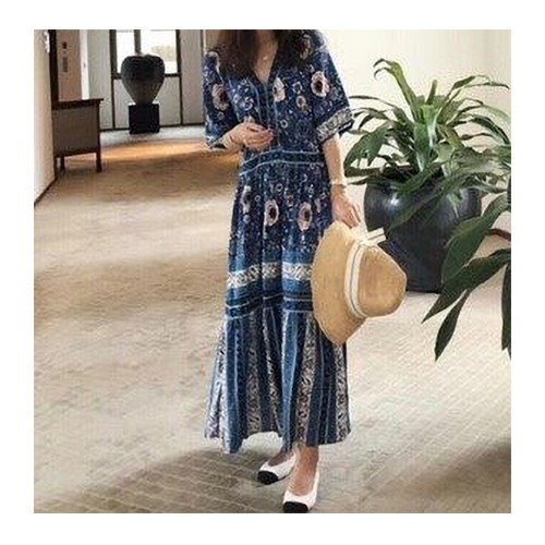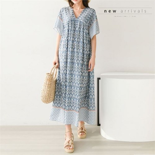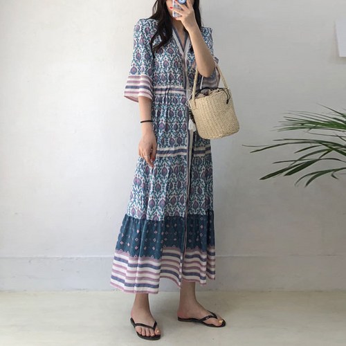 아티젠 바캉스룩 에스닉 V넥 롱원피스