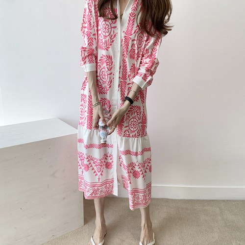 모니카앤아리 / (모니카앤아리)루즈핏 플라워 에스닉 롱 로브 원피스