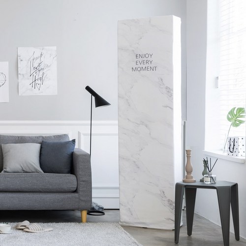 베베데코 3중직 에어컨커버 스탠드형 스판 사각 마블, 화이트
