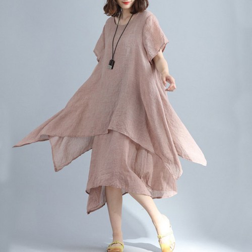 여성 여자 여름 린넨 원피스 플리츠 하객 휴양지 비치 ATDQ