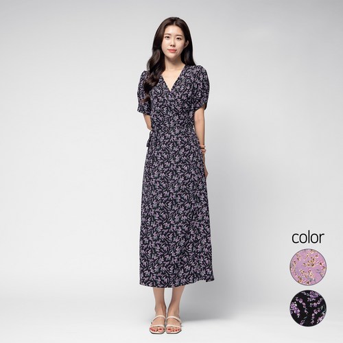 올파인 트라미 쉬폰 롱 원피스 반팔원피스 랩원피스