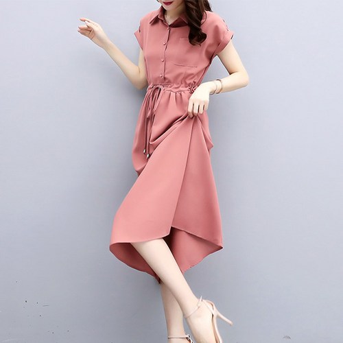 에이치스 소녀핏 체형커버 린넨 셔츠 반팔 롱원피스