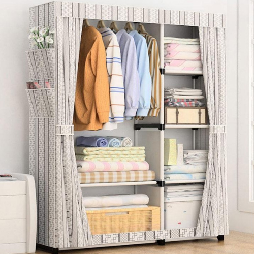 우아한클릭 특대형 커튼 조립식 간이 비키니 옷장, 그레이스트라이프