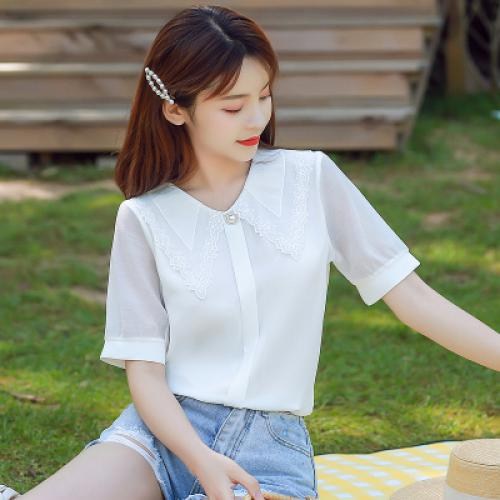 라임브릿지 하트 볼륨 카라 반팔 블라우스