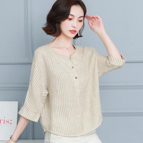 ab.f.z 린넨 혼방 라운드넥 블라우스