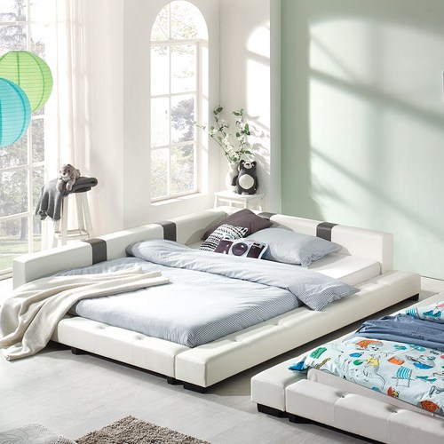 젠티스 저상형 사각스퀘어 가죽침대 세트, 화이트(프레임 +참숯콤포트매트)