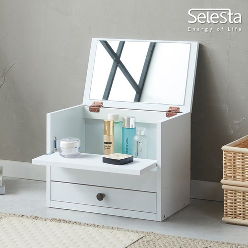 셀레스타 프리티C 덮개식 거울 좌식 화장대, 화이트_KDDE52A