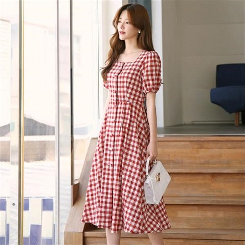 [NewCare] 여름 체크 스퀘어 원피스 여름롱원피스 스모크원피스