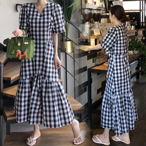 팡팡샵 T 반코코체크롱 임산부 원피스