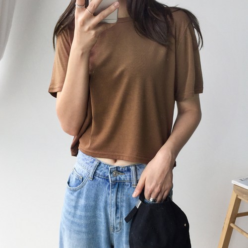 엔비룩 여성용 베이직 크롭 반팔 티셔츠