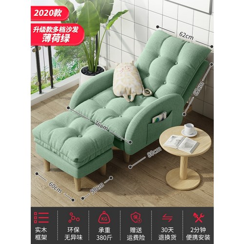 1인용 리클라이너 게으른 쇼파 높이조절 홈쇼핑 소파, 【다단계 조절 게으른 소파] 민트 그린 + 발판