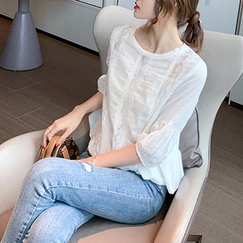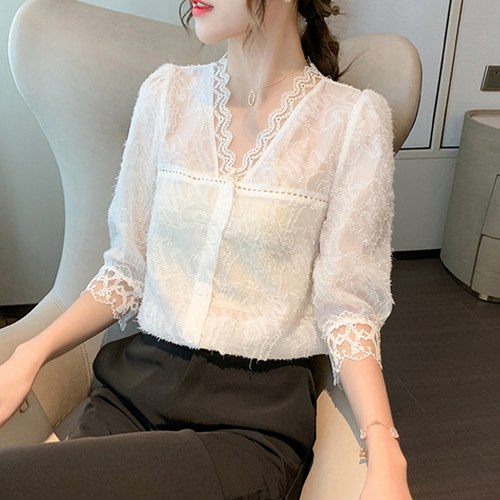 무자크 날개레이스 V넥 블라우스 K5BL10