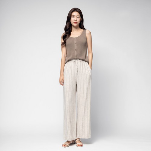 진마니아 여성용 밴딩 린넨 와이드 팬츠 WJU-650