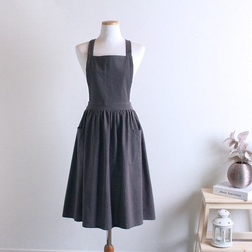 이즈미 린넨 원피스 앞치마, 차콜그레이, 1개