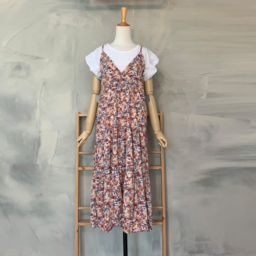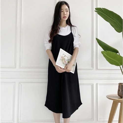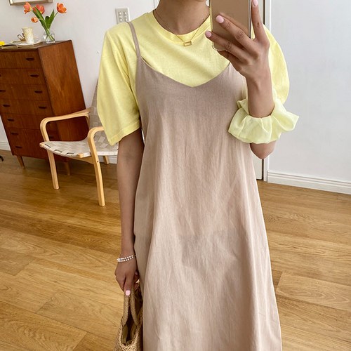 온더리버 체크 뷔스티에 롱 원피스 + 반팔 세트