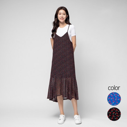 행복한여자 [당일발송]수채화 셔링 쉬폰 뷔스티에 원피스
