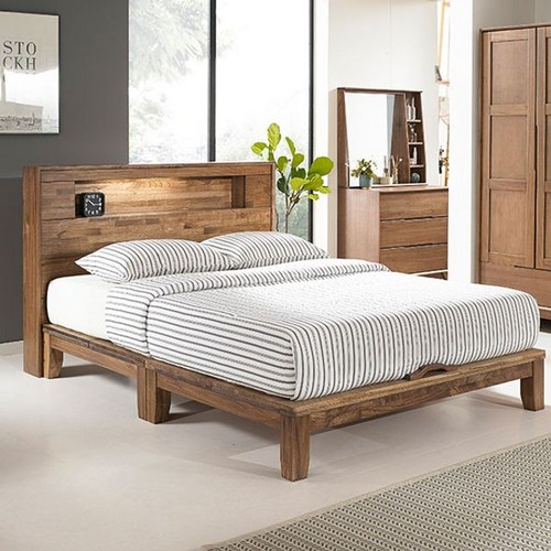 바로방가구 로얄 LED 고무나무 원목 수납형 서랍형 슈퍼싱글 퀸 침대 프레임, 내추럴무늬