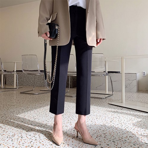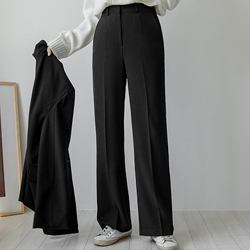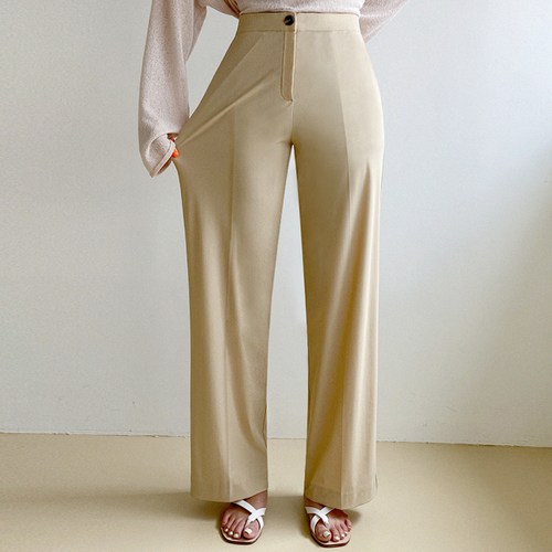 빼빼 여성용 속밴딩 하이웨스트 슬림핏 일자 슬랙스