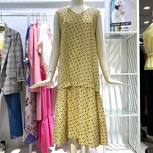 티렌 러블리한 민소매 네모패턴 플레어 원피스 L202PWO507 민소매원피스 플레어원피스 나시원피스 프린트원피스 리본원피스 여름원피스