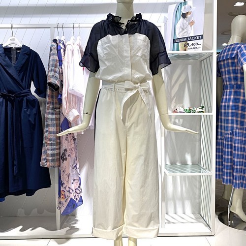 티렌 러플넥 시스루 점프수트 L202PWO518 롱점프수트 프릴점프수트 여름점프수트 시스루점프수트 러플넥점프수트 배색점프수트