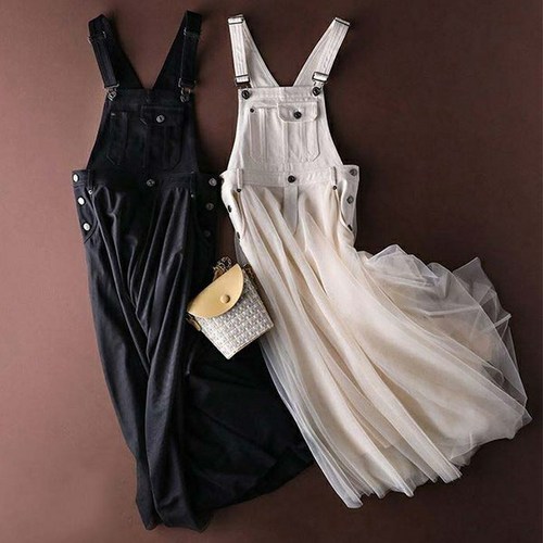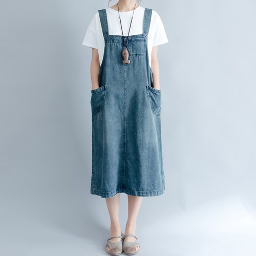 여성용 멜빵 데님 원피스
