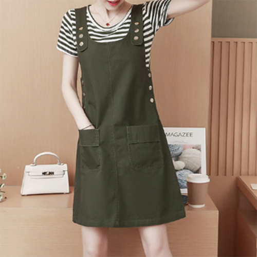 NewCare 투포켓 뒷트임 멜빵 원피스